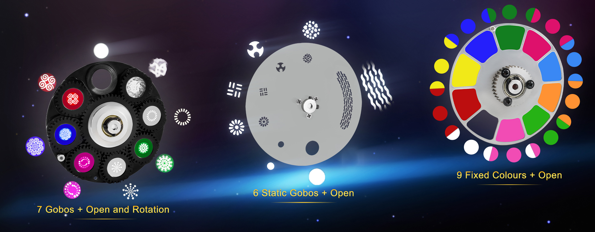 7 gobos + open and rotation