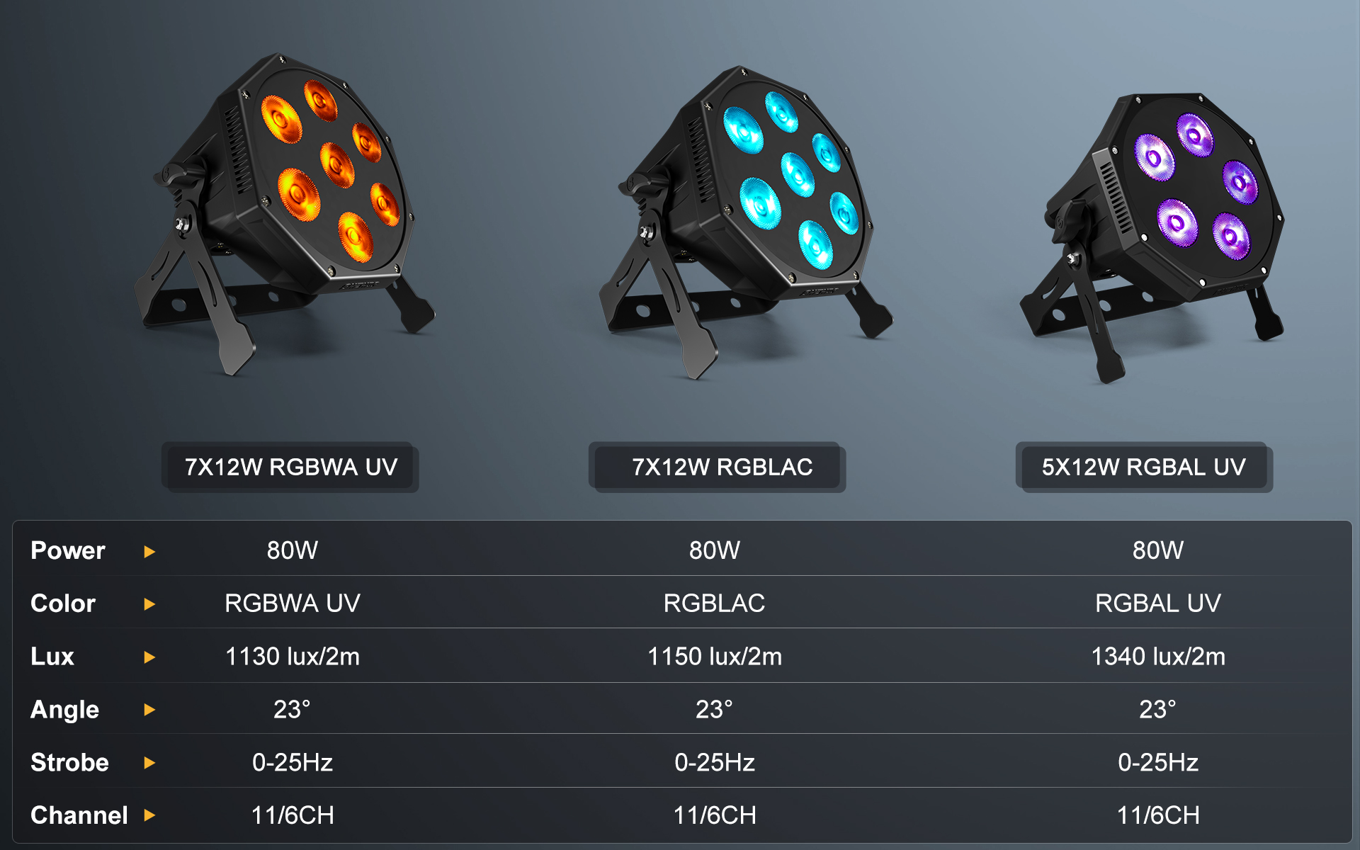 7x12W RGBLAC 6in1 mixing