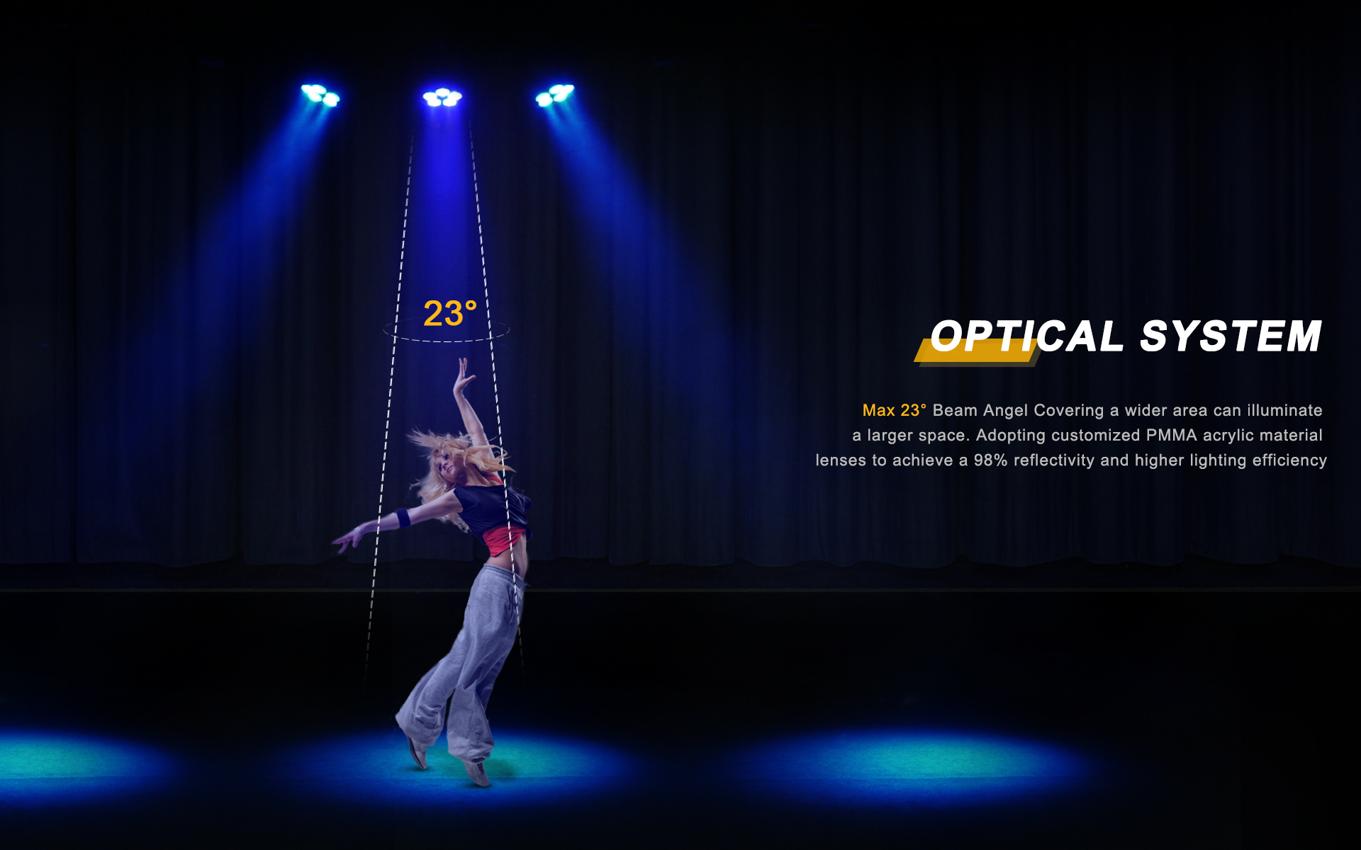 Lighting engineers can flexibly switch colors, angles, and lighting effects.