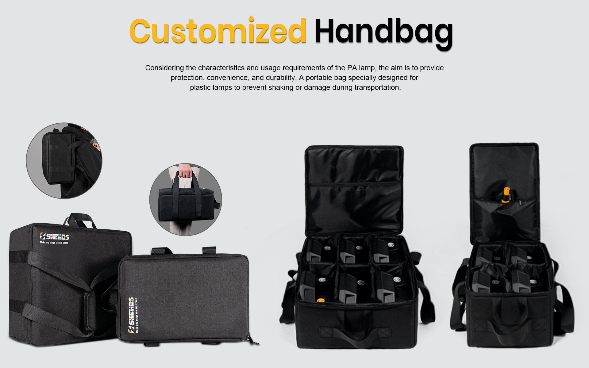 A portable bag specially designed for plastic lamps to prevent shaking or damage during transportation.